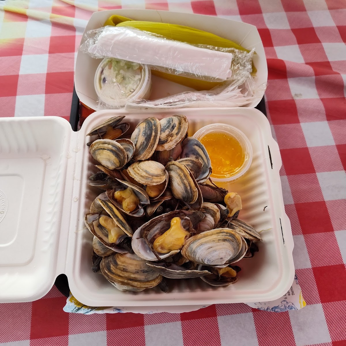 The food was good but I wish there had been at least a flavored butter option, like garlic or something to add an extra layer of flavor. Also, the bathroom is a Port-a-John. You also eat outside, but luckily there were some tables with umbrellas to protect us from the rain. The tables were wet though because the umbrellas had not been put up.